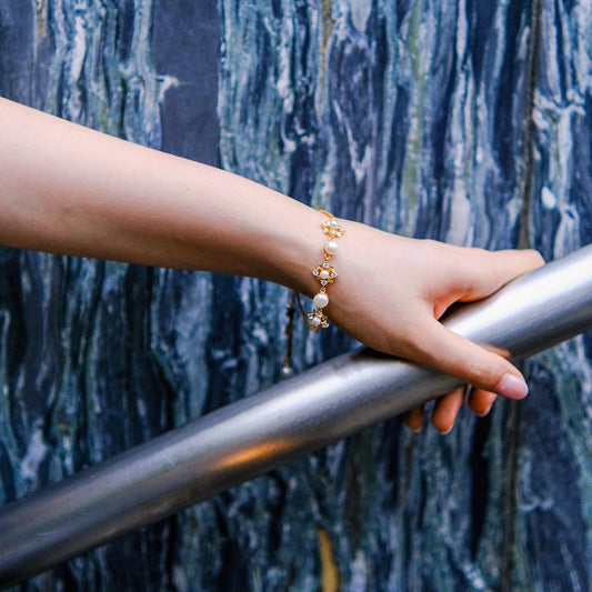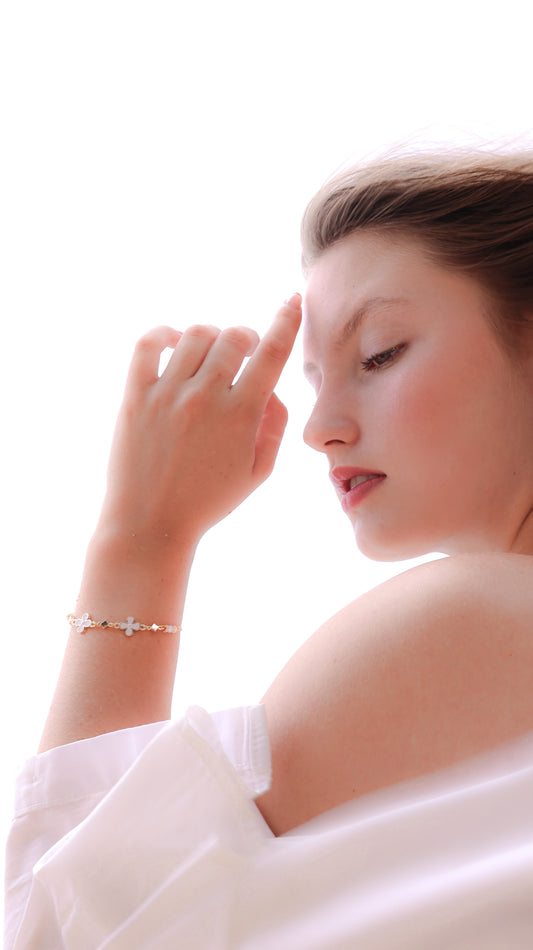 White wood aster | floral white bracelet - elegant pearl minimal premium artist quality