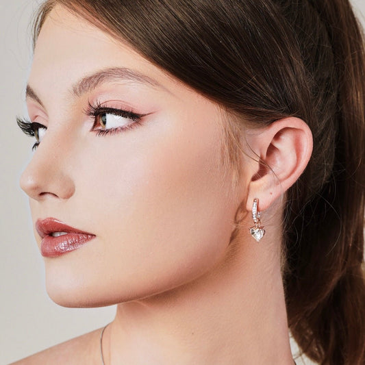 HEARTBEAT - Heart Shaped Swarovski crystal, rosegold, detailed everyday sweet earrings