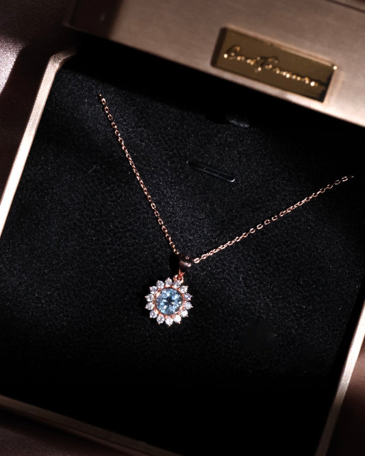 Blue Horizon Sun Necklace – Healing Blue Topaz & Made-in-Austria Crystals | Elegant Silver & Rose Gold Jewelry