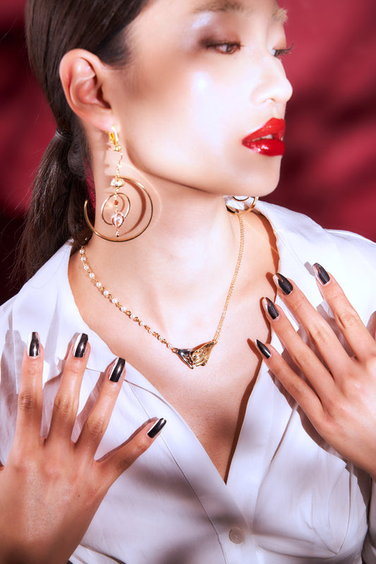 Union. | "If you love something, you will protect it" - Artistic necklace - pearl chain, Swarovski champagne pearl